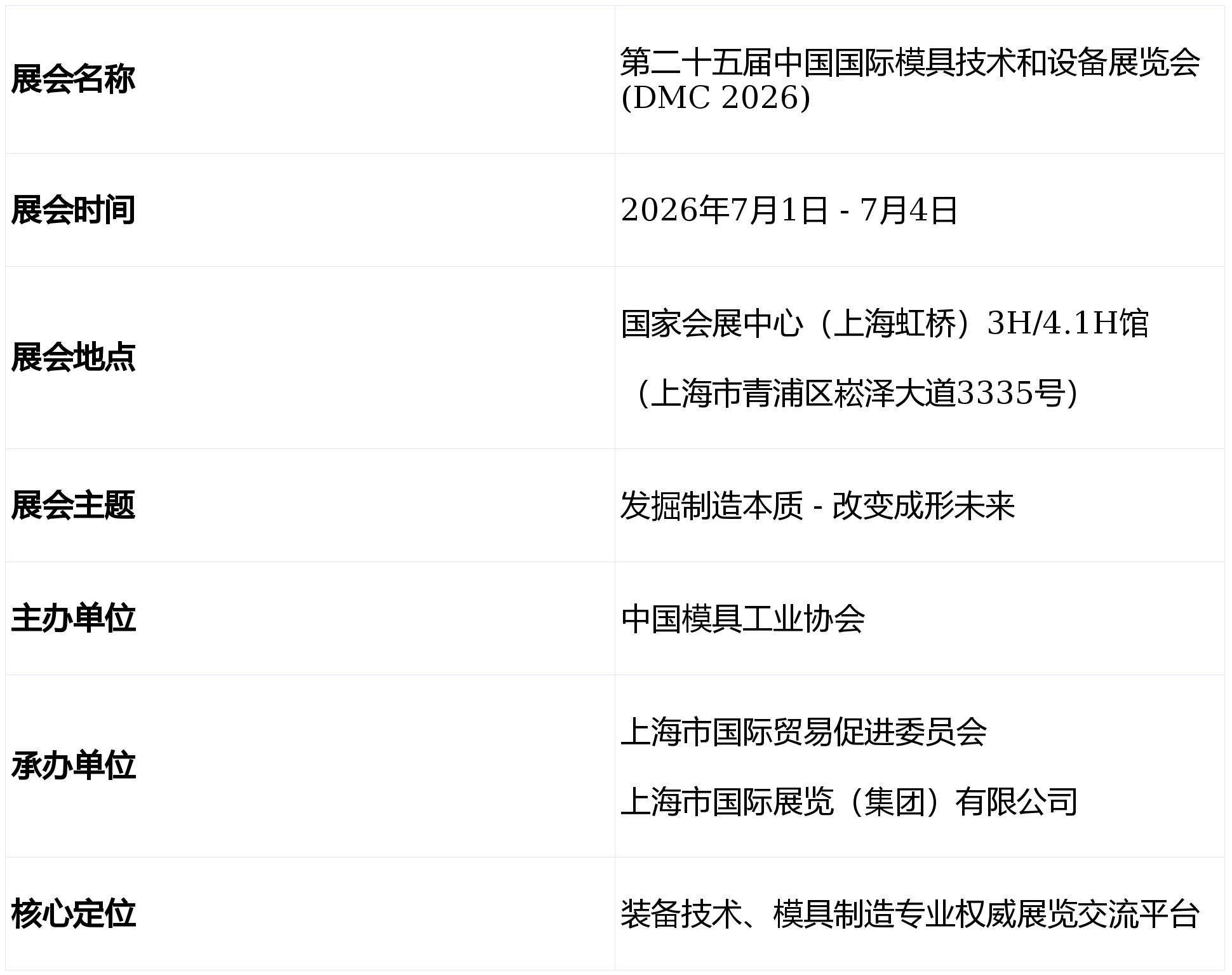 2026年7月1日至4日,做为模具行业的年度风向标,本届DMC以